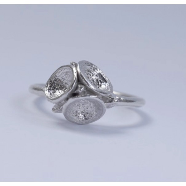 The Trio Leucoxylon Ring is a handcrafted piece made in Melbourne, inspired by the natural form of the Leucoxylon pod, sourced from a native Australian tree. Its organic design highlights the unique texture and structure of the pod, celebrating the raw beauty of Australian flora.